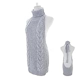 レディース ワンピース 肌見せセーター ルームウェア レディース バックレスニット 背中開き ブラック カーキ ブルー グレー (グレー)