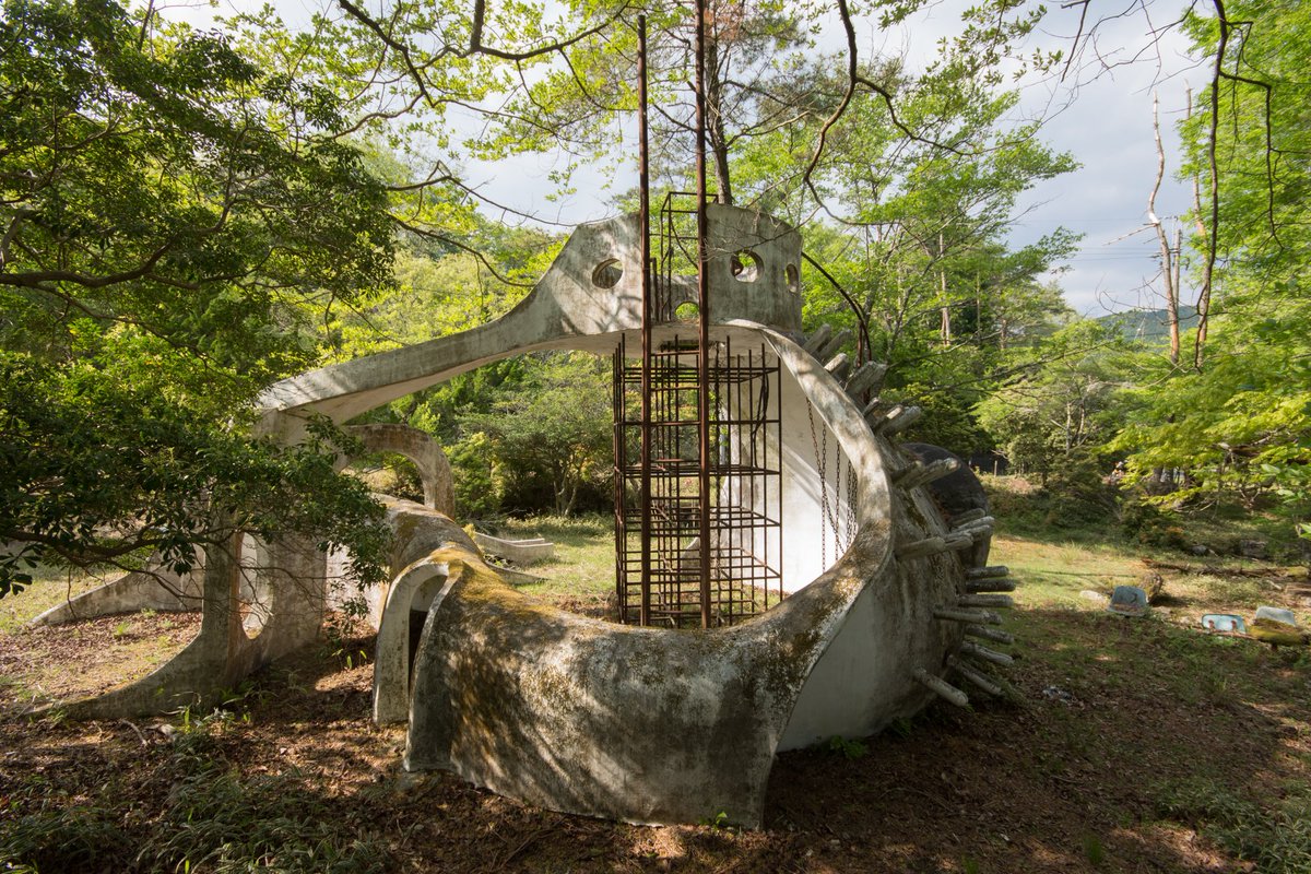 廃墟と化した公園で発見した奇妙奇天烈な遊具。角度によっては宇宙船のようにも見えるし地球外生命体のようにも見える。角ばったところが一切なく、とはいえ「ふっくら丸みがある」といった可愛らしい表現も似つかわしくない。「ヌルッとした不気味な造形」が的確ではなかろうか。最高じゃねえか。 pic.twitter.com/9TCMzXpuPZ